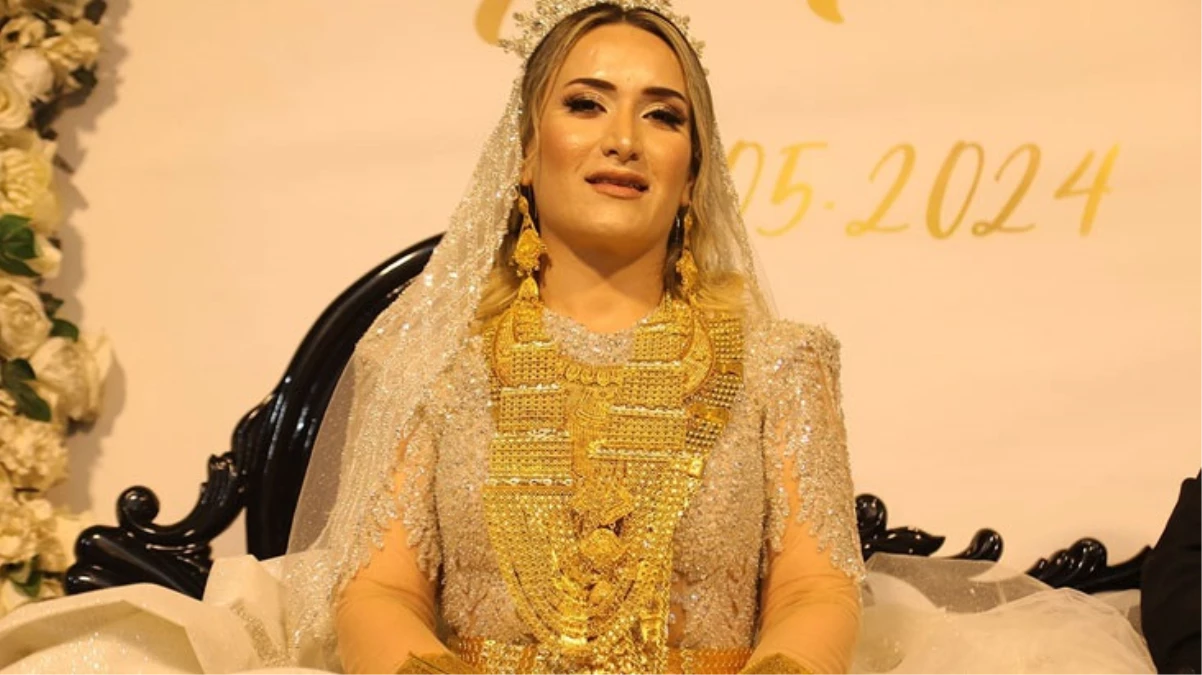 Aşiret düğününde kilolarca altın takılan gelin hareket etmekte zorlandı