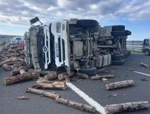 Gelibolu’da Odun Yüklü Kamyon Devrildi: 2 Kişi Hafif Yaralandı