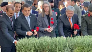“Çanakkale’yi geçilmez kılmak için Anadolu’nun dört bir yanından gelen vatan evlatlarının yattığı bu topraklarda bulunuyoruz. O büyük kahramanlar her türlü övgüyü hak ediyor. Biz onlar için ne yapsak haklarını ödeyemeyiz. Fakat bugün burada olarak onları unutmadığımızı ve unutmayacağımızı gösteriyoruz. O büyük insanlar asla unutulmayacak.”